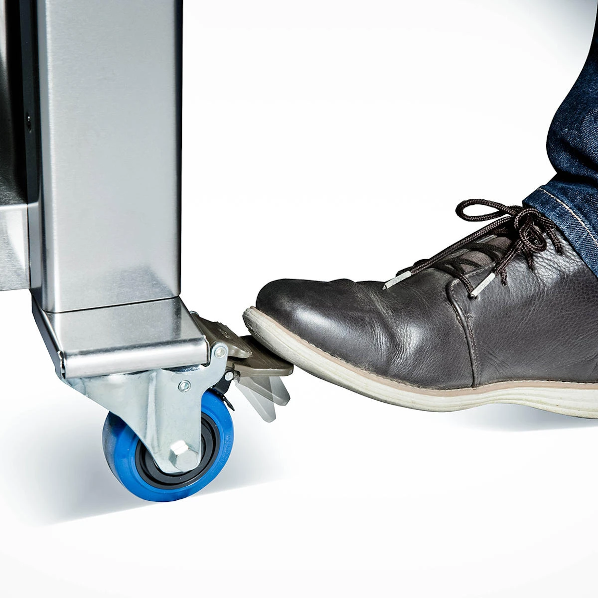 Durch die extrem stabilen und großen Räder kann der Gasgrill mühelos über jedes Gelände bewegt werden. Durch die feststellbaren Lenkrollen steht der Regal S 420 Pro Commercial sicher an seinem Platz.