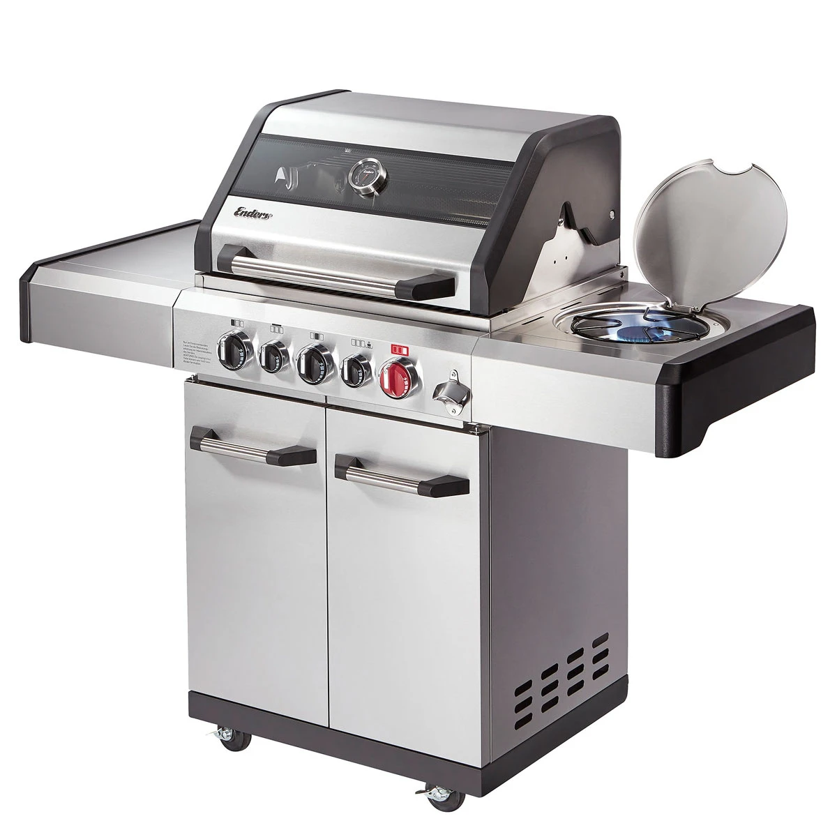 Mit dem Enders Kansas II Pro 3 SIK Turbo erfüllt Ihr Euch den Traum einer leistungsstarken Grillstation der Spitzenklasse: Mit für kraftvolles direktes und indirektes Grillen, , und ist er ein echter Alleskönner in der Profiliga. Auf der großen Grillfläche mit dem innovativen gelingen Euch vielfältige und raffinierte BBQ-Menüs. und hochwertige verleihen dem Power-Paket dabei ausgezeichnete Stabilität und lange Lebensdauer.