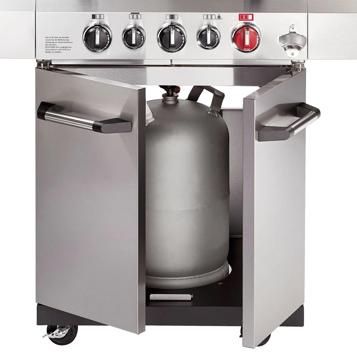Ihr braucht immer den vollen Durchblick? Dann geht Euch beim Blick durch das garantiert keine Hitze verloren. Und wer sich lieber auf die angenehmen Dinge konzentriert: erleichtert die ungeliebte Grillreinigung, dass sie fast schon eine Freude ist. Neben beiden Flammblechen lassen sich auch die seitlichen Edelstahlteile der Brennkammer entnehmen und in der Spülmaschine reinigen – ganz easy und ohne Werkzeug.