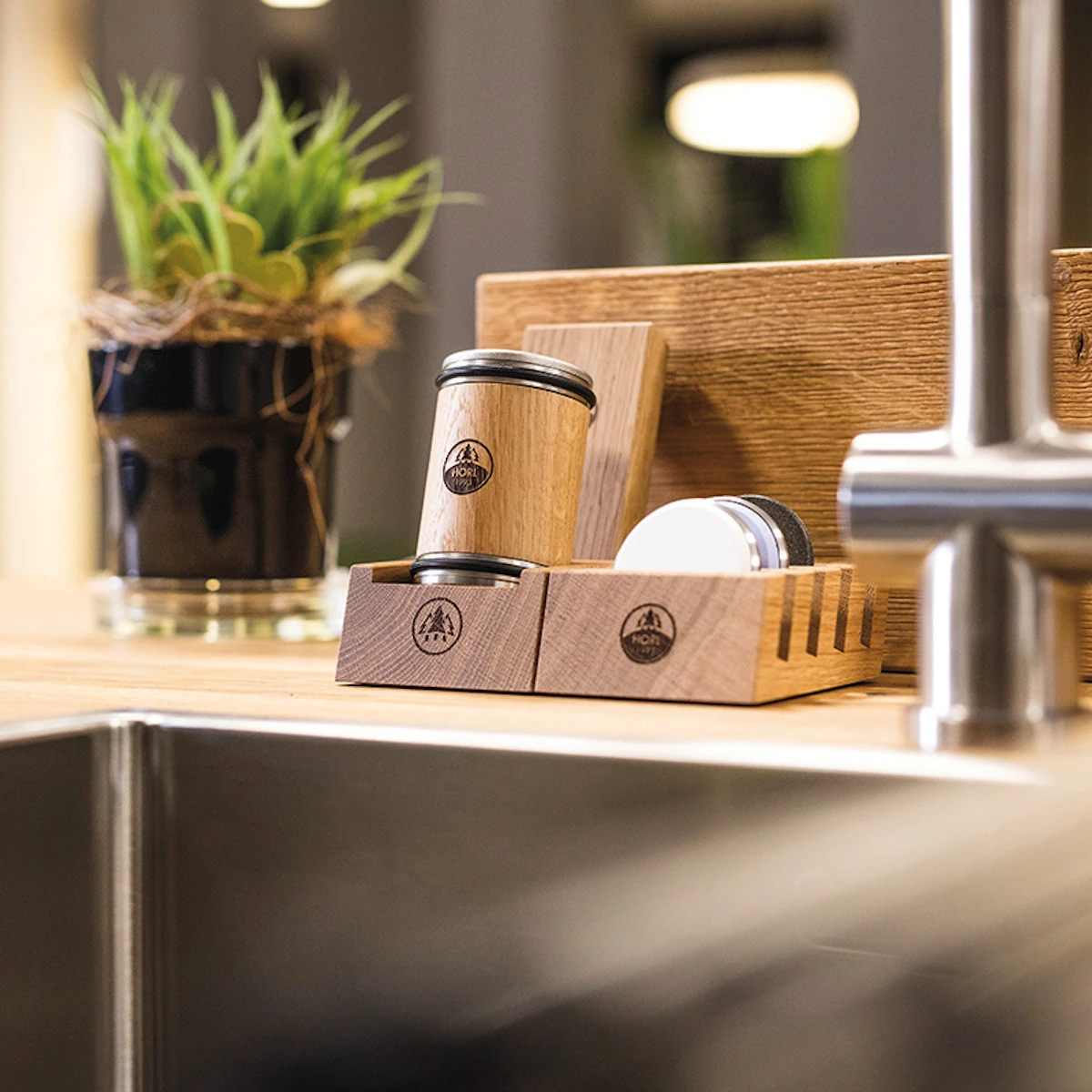Mit der HORL Aufbewahrungsstation für den HORL Rollschleifer und die HORL Magnetschleiflehre herrscht Ordnung in Eurer Küche. Immer griffbereit ist die Station nicht nur super praktisch, sondern auch ein echter Blickfang. Hergestellt im Schwarzwald aus hochwertigem Eiche-Massivholz.