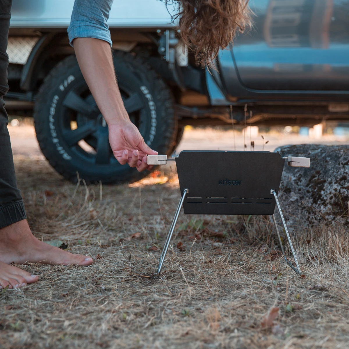 Der kleinste Holzkohlegrill aus dem Sortiment der Münchner Start-up Firma Knister ist die perfekte Wahl für jeden, der gerne unterwegs eine spontane Grillmahlzeit genießt. Ob Fahrradtour in den Park, Zelten am Strand oder Urlaub auf Balkonien – der Knister Grill bietet 2 bis 3 Personen hervorragende Grillperformance im kompakten Format.