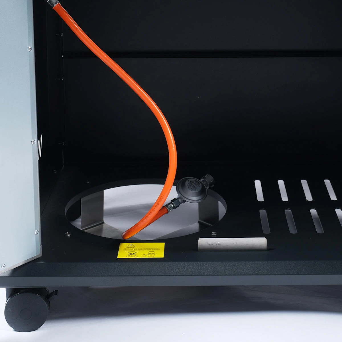 Die qualitativ hochklassigen Brenner aus Edelstahl haben eine Gesamtleistung von 14 kW und sind im robustem mit eingebaut. In dem Brennergehäuse wird die Hitze besonders gut von Umwelteinwirkungen wie Kälte isoliert. Das mit extra flachen Flammenverteilern sorgt für eine gleichmäßige Hitzeverteilung unter dem Grillrost und in der Garkammer. Die Flammenverteiler funktionieren ebenso als Schutz für die Brenner, damit diese durch hinunter tropfenden Saft bzw. Fett nicht verstopfen.