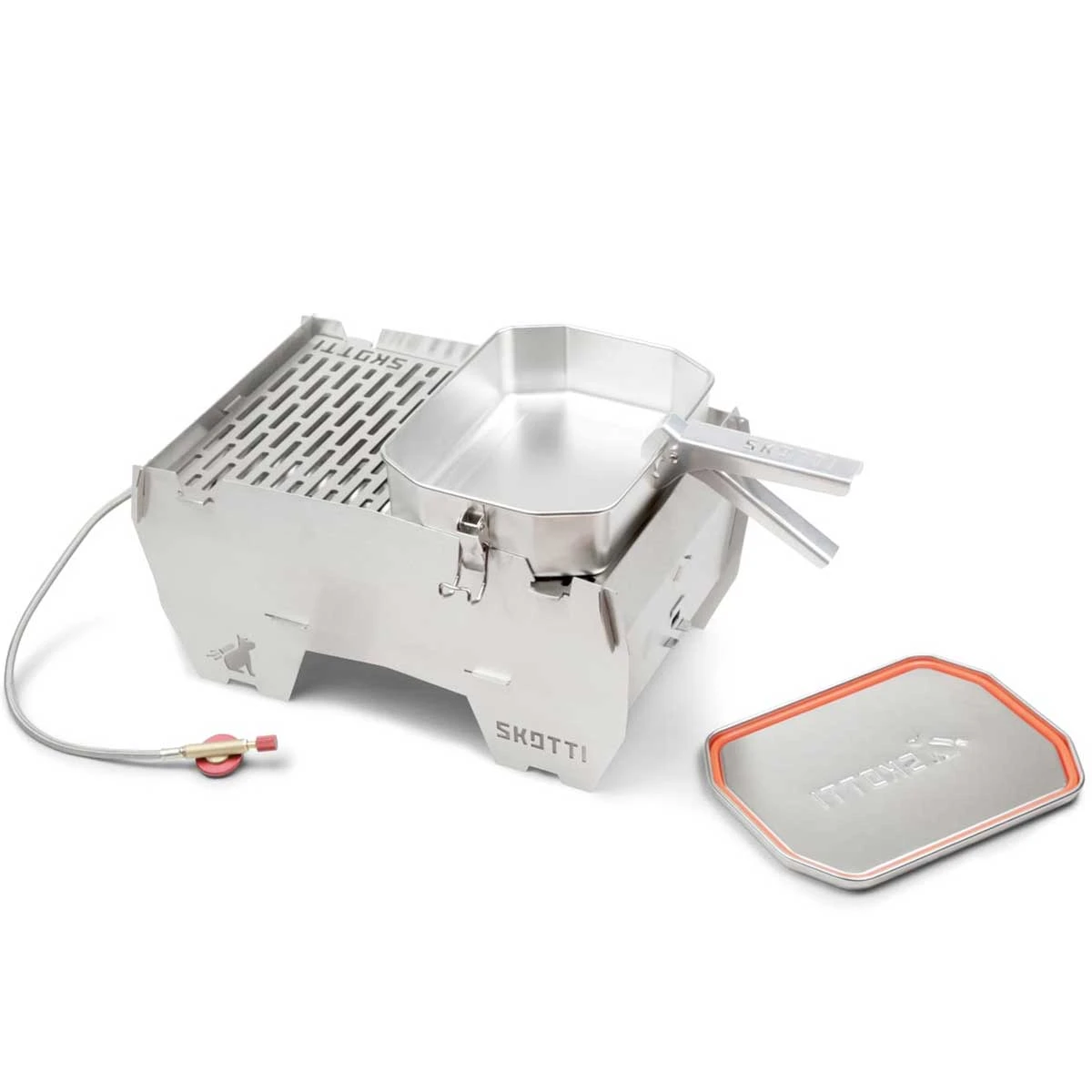 Mit der Skotti Boks verwandelt Ihr Euren Skotti Grill in eine kleine Outdoorküche zum Grillen, Kochen, Braten und Schmoren. Die robuste Edelstahldose mit dem dicht schließendem Deckel und einem praktischen Greifer aus Aluminium kann äußerst vielseitig verwendet werden und ist ein geniale Erweiterung für Euren Skotti Grill.