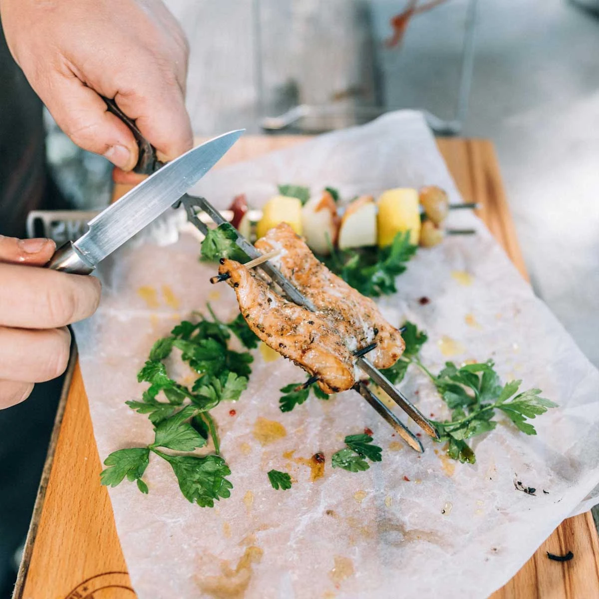 Dieses Zubehör für Euren Skotti Grill eröffnet Euch viele neue Grillmöglichkeiten. Auf den 6 könnt Ihr alles zubereiten, was sich am Spieß drehen und wenden lässt. Fleisch, Würstchen, Gemüse, Brot oder Obst lassen sich – in die richtige Form gebracht – zu köstlichen Spießkreationen kombinieren, die dank der auch beim Wenden sicher sitzen.