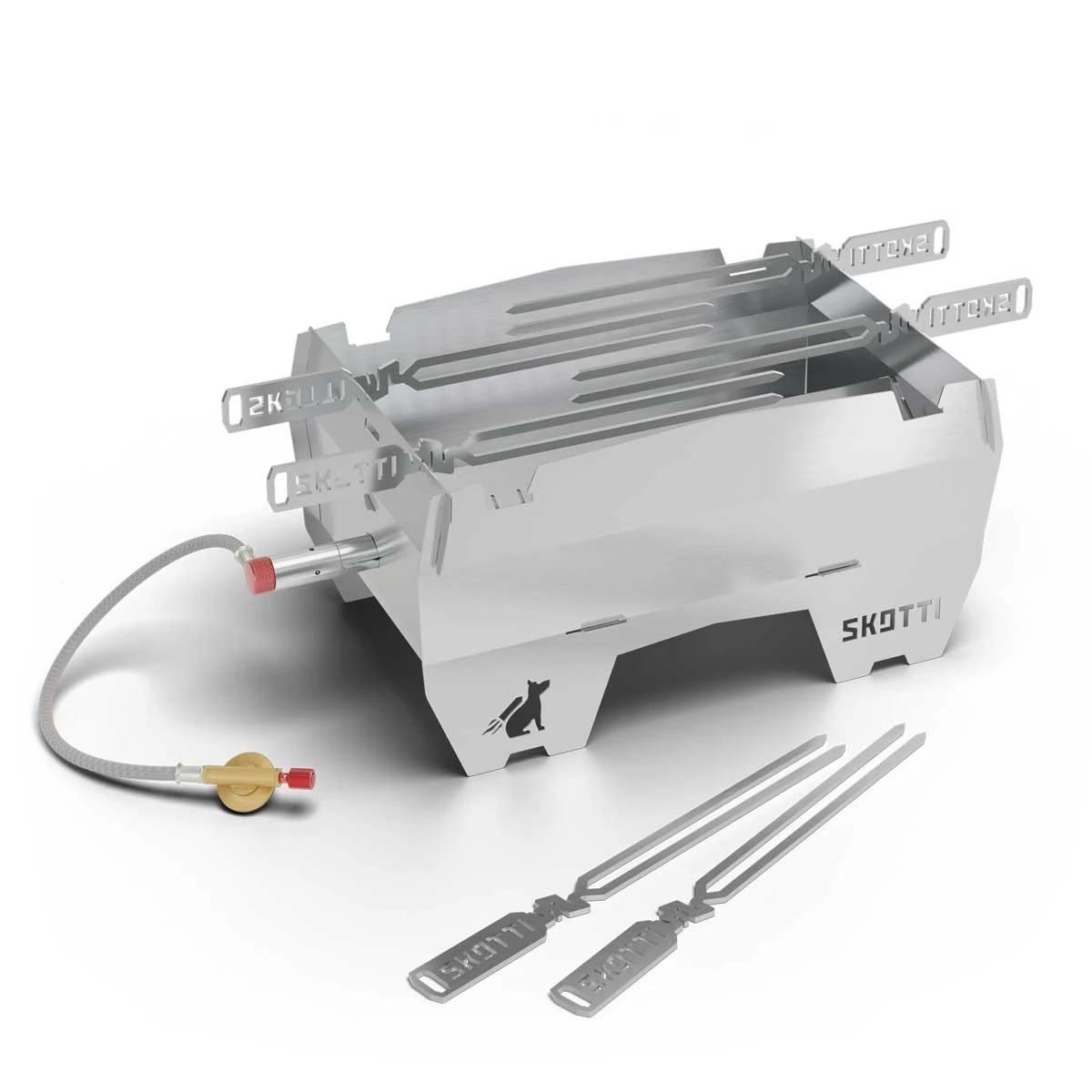 Mit den cleveren könnt Ihr die Spieße auf jedem Skotti Grill sowohl quer als auch längs einsetzen und sofort mit dem Outdoor Spießgenuss loslegen.