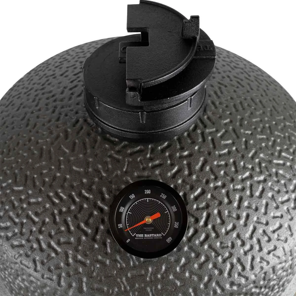 Das neue Design im angesagten und die , die nicht mehr so typisch eiförmig daherkommt, fallen besonders ins Auge. Dazu einige, wie z. B. die optimierten Ab- und Zuluft-Ventile, eine clevere Deckelform und das verbesserte Deckelscharnier – und schon präsentiert sich Euch der The Bastard VX als die perfekte Fusion von traditioneller Grillmethode, brandneuer Technik und attraktivem Design.